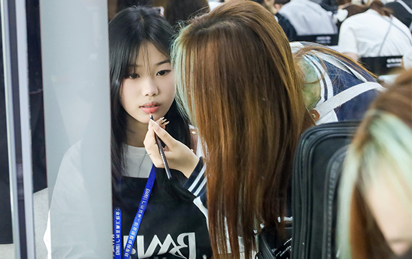 广州百美汇校园里的彩妆作品秀