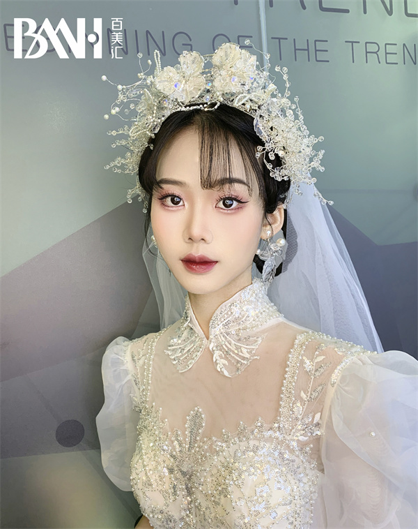 韩式简约新娘妆展示韩式简约新娘妆还要注重整体造型的搭配,如服饰、发型、配饰等,服饰应选择款式简洁、发型需有层次感、配饰重点装饰出时尚感等等,如此才能展示出韩式新娘的轻巧优美特点。接下来我们看看最终的呈现效果吧!