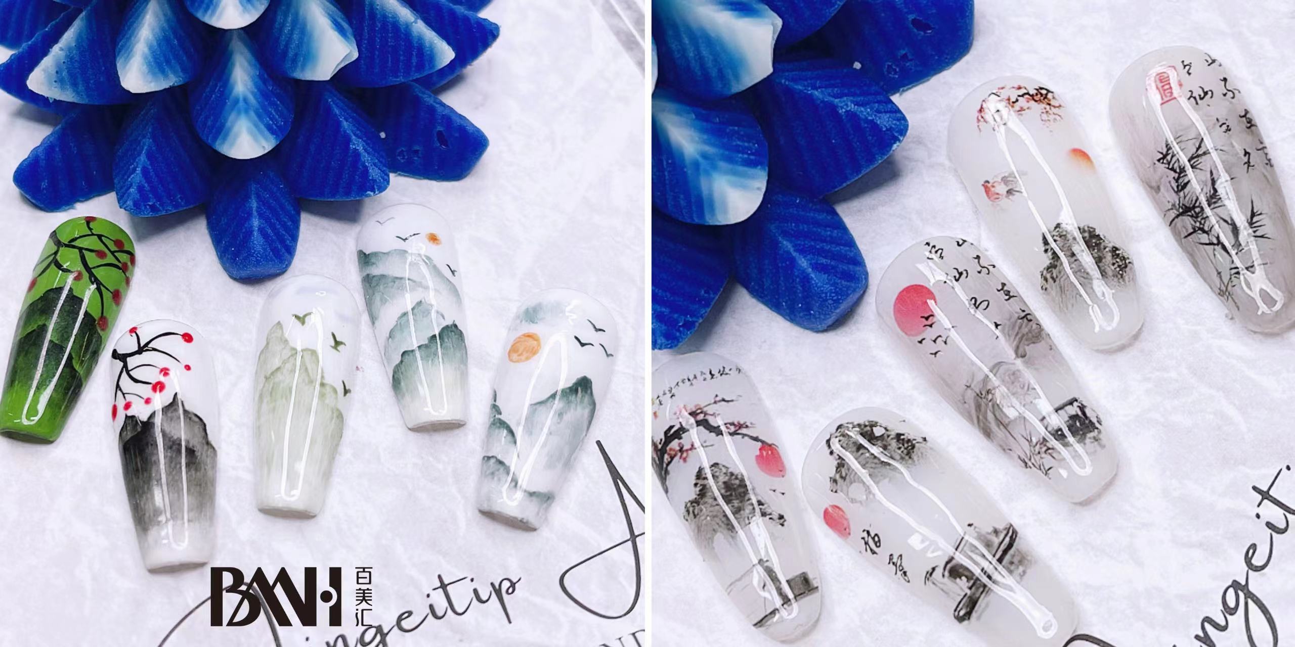 【国画风美甲】指尖上的东方韵味,欣赏千遍都不会腻 - 时尚资讯 - 广州百美汇形象设计职业培训学校官网_美学教育知名品牌|专注于美容美发化妆培训
