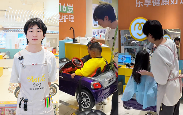 目前,陈翔的工作目标很明确——努力通过试用期,成为一名合格的正式发型师。他珍惜每一次实操机会,无论是编发还是造型设计,都认真对待。“在萌宝贝,不仅能发挥想象力雕刻自己想要的图案,还能在实践中快速成长。”他笑着说,未来希望能掌握更多高阶技术,比如儿童创意发型设计,让每个孩子都能拥有独特的造型。